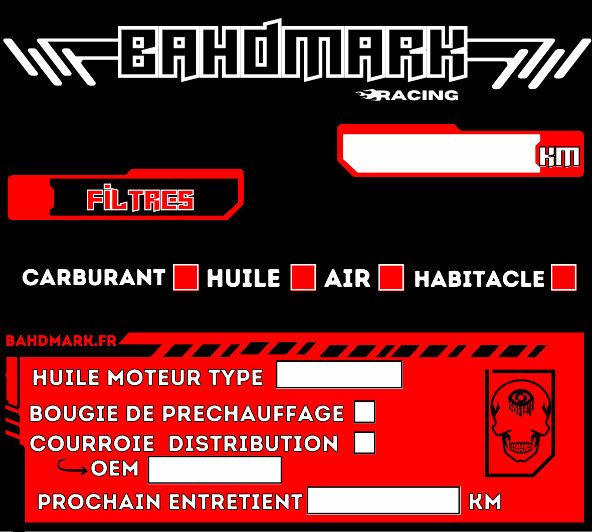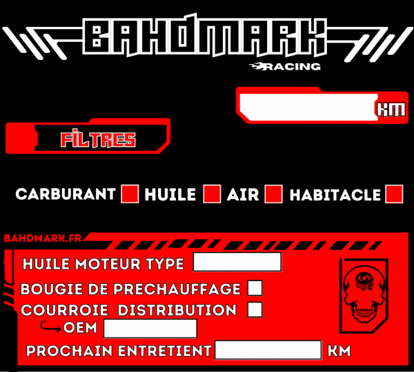 Sticker étiquette d’entretien conçu pour noter toutes les informations importantes liées à l’entretien de ton véhicule : vidange, changement de filtre, bougies, huile, etc. Pratique et résistant, il te permet de garder un suivi clair et précis.Â